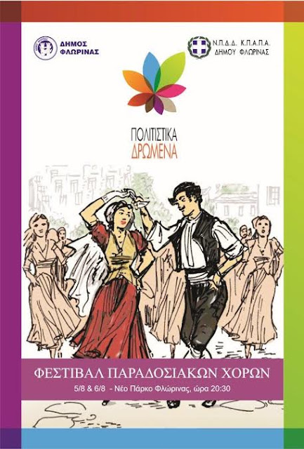 Φεστιβάλ παραδοσιακών χορών θα πραγματοποιηθεί στο πλαίσιο των εκδηλώσεων «Πολιτιστικά Δρώμενα 2016 » του Δήμου Φλώρινας και του Νομικού του Προσώπου στις 05 και 06 Αυγούστου 2016 στο Νέο Πάρκο Φλώρινας.